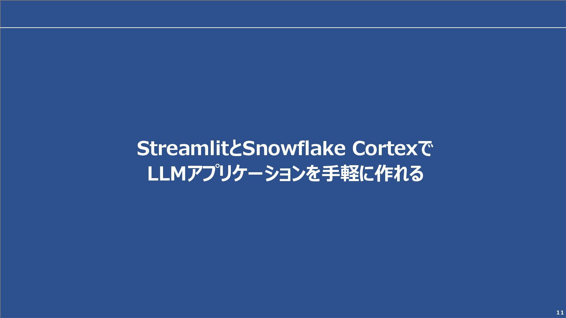 11 StreamlitとSnowflake Cortexで LLMアプリケーションを手軽に作れる