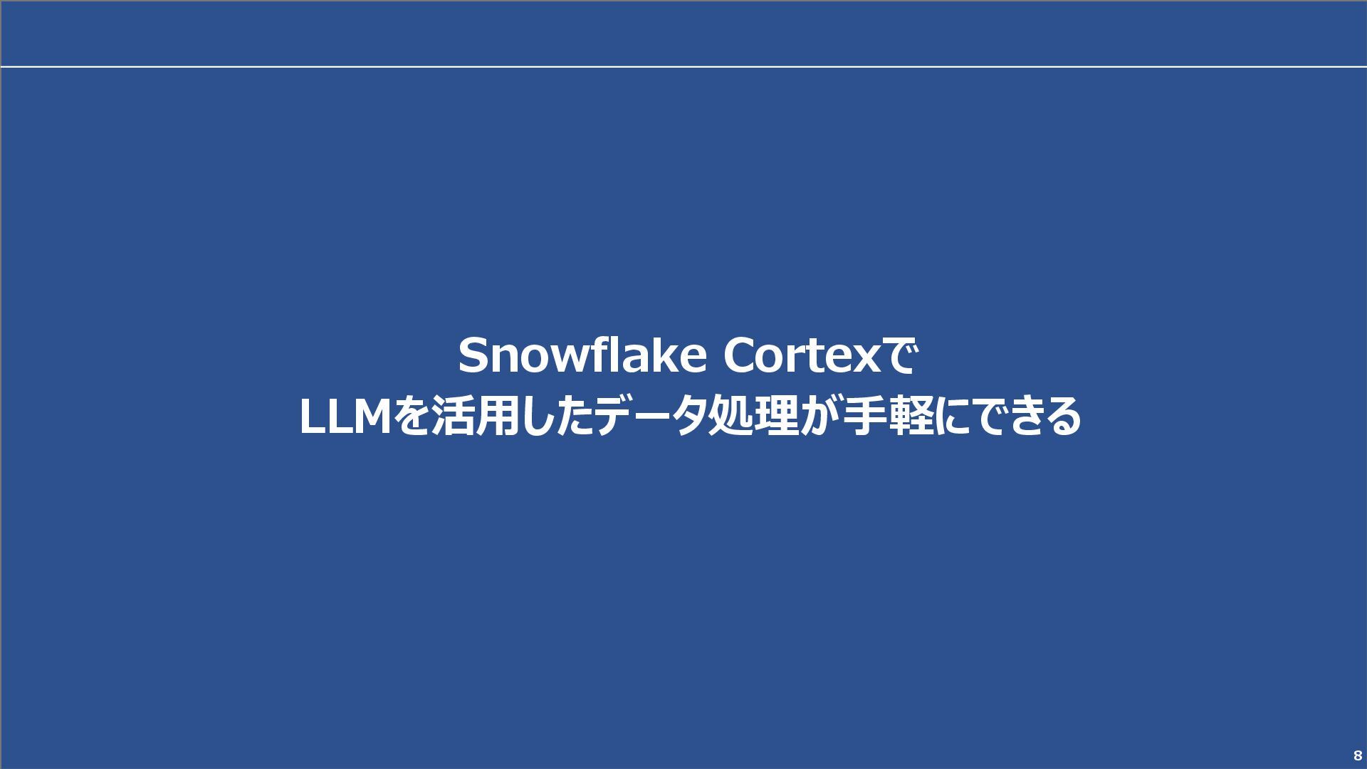 8 Snowflake Cortexで LLMを活用したデータ処理が手軽にできる
