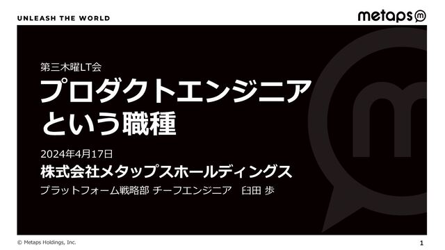 • メタップスHD プラットフォーム戦略部 チーフエンジニア(re:shine チーム) • エンジニア歴 約17年(マネージャー歴 約7年) • 音楽業界から、IT業界に転職。SIerにて銀行のシステムを経験した後、 Web業界へ。 • 数社を経てオフショア開発提供事業を行っている会社に転職。 • 自社サービスを育てたいという欲から、Metapsへ入社し「re:shine」 へ参画。 • 得意言語は、PHP・Ruby・Vue。好きな言語は、Kotlin。今後やりた い言語は、Go(今習得中)。 • 趣味は、釣り・ボクシング・ゲーム・ウクレレ・サバゲー ・スノーボ ード。遊ぶこと大好き。