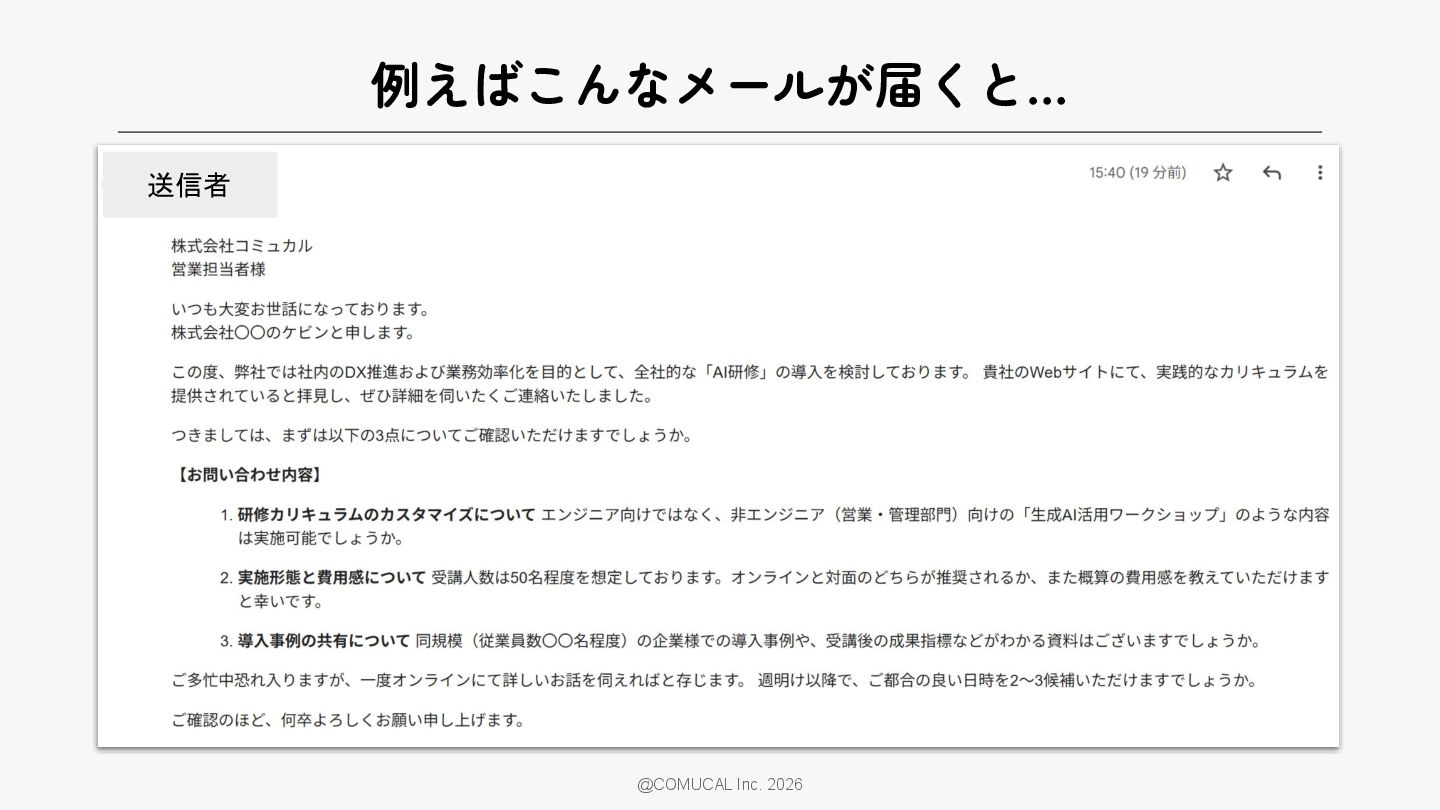 @COMUCAL Inc. 2026 例えばこんなメールが届くと… 送信者