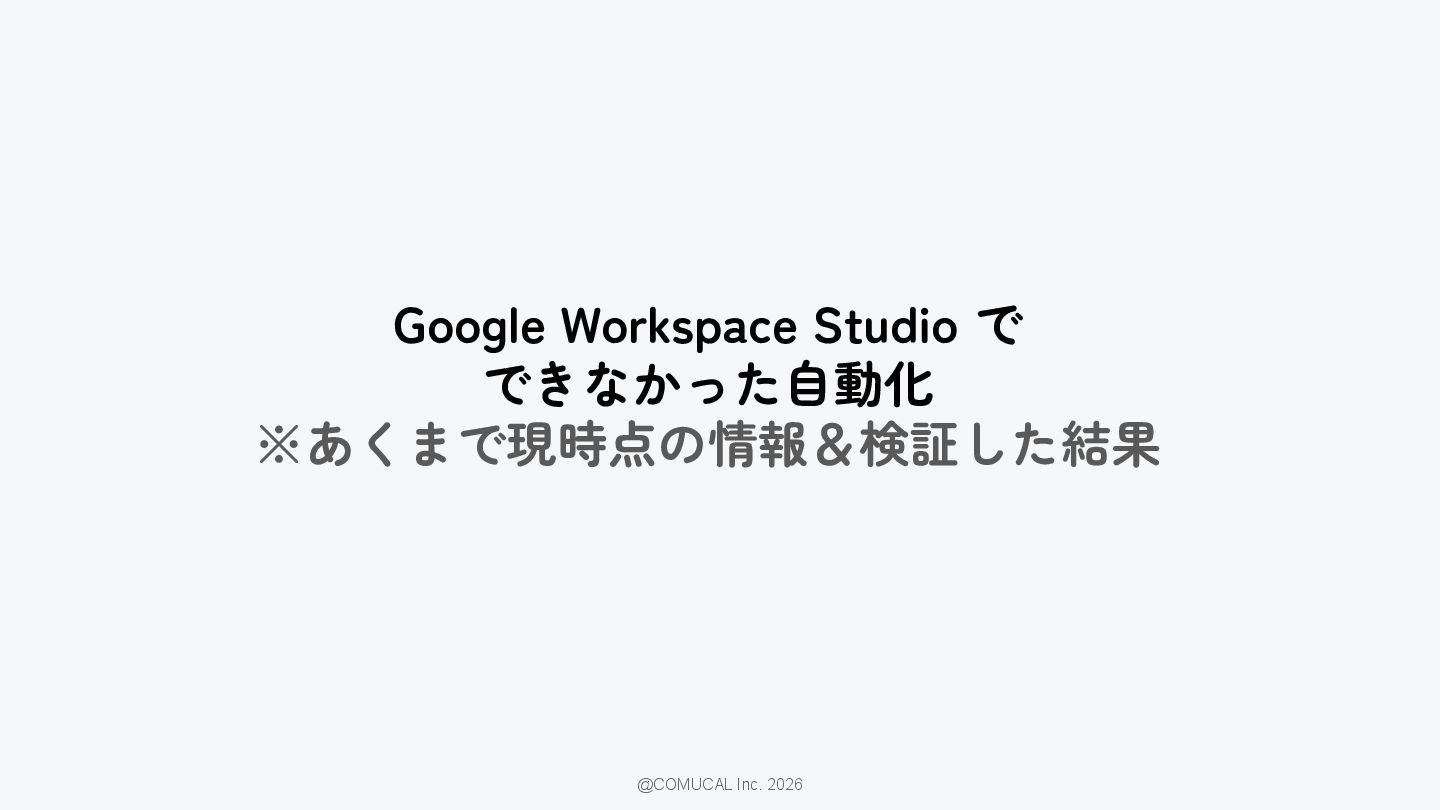@COMUCAL Inc. 2026 Google Workspace Studio で できなかった自動化 ※あくまで現時点の情報&検証した結果