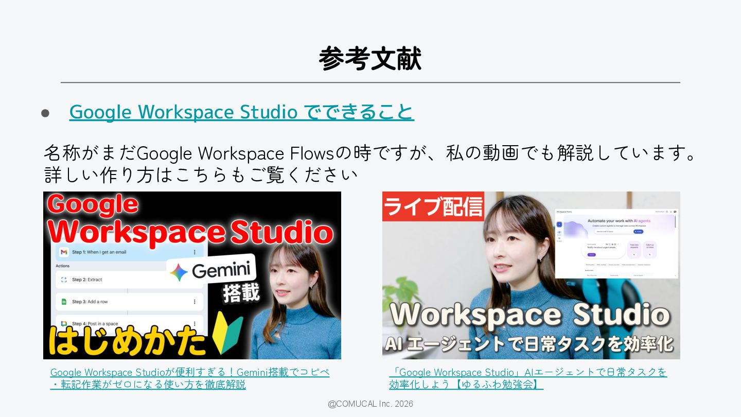 @COMUCAL Inc. 2026 参考文献 • Google Workspace Studio でできること 名称がまだGoogle