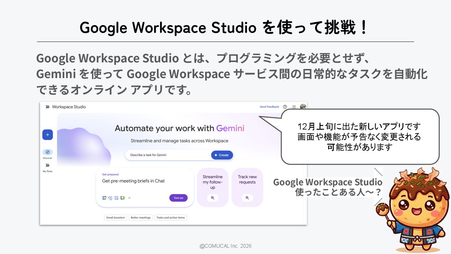 @COMUCAL Inc. 2026 Google Workspace Studio を使って挑戦! Google Workspace Studio
