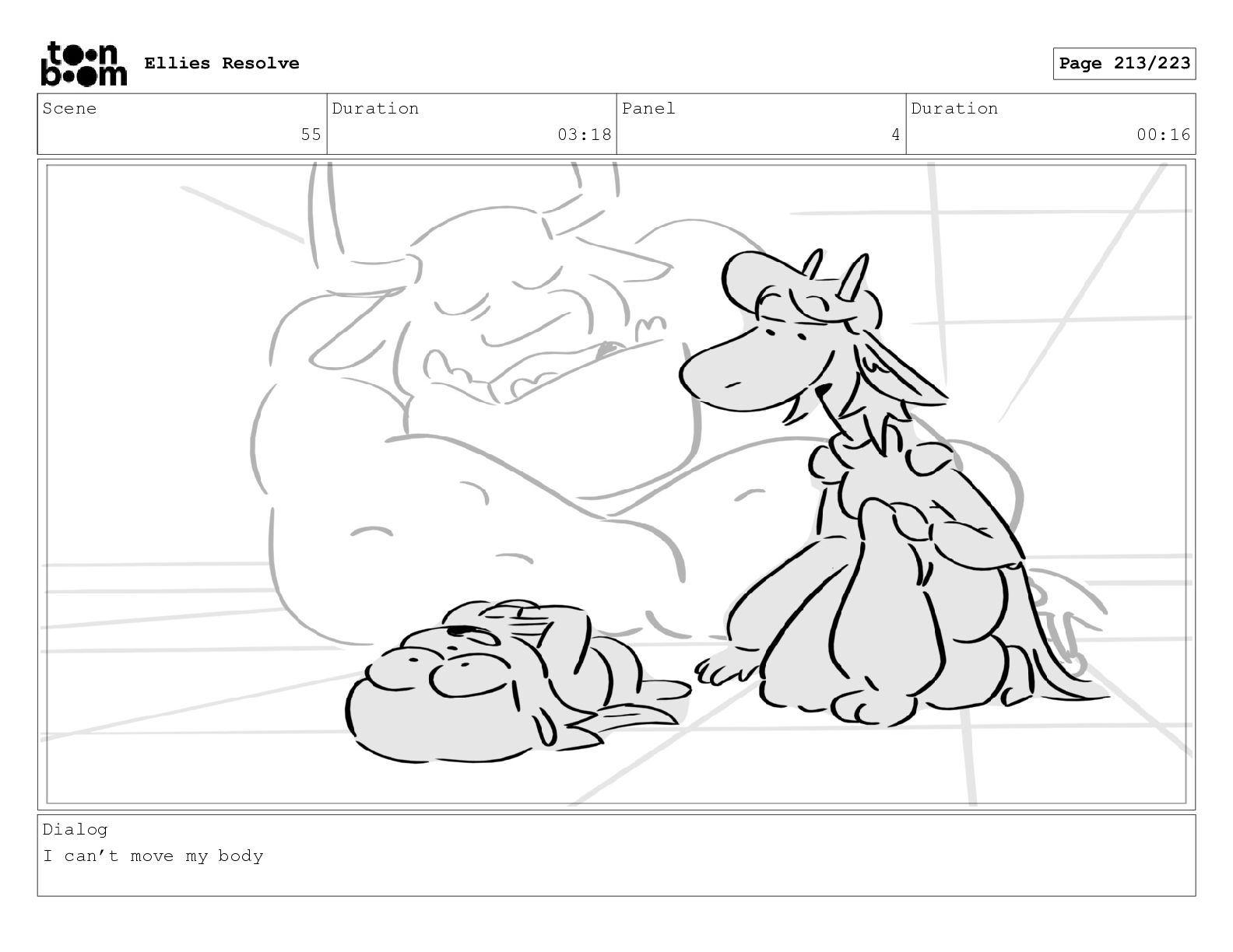 Scene 55 Duration 03:18 Panel 4 Duration 00:16 Dialog I