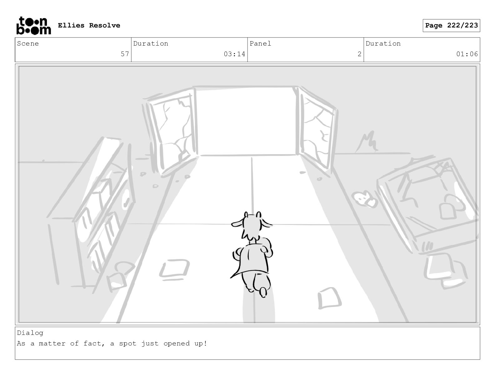 Scene 57 Duration 03:14 Panel 3 Duration 01:04 Ellies Resolve