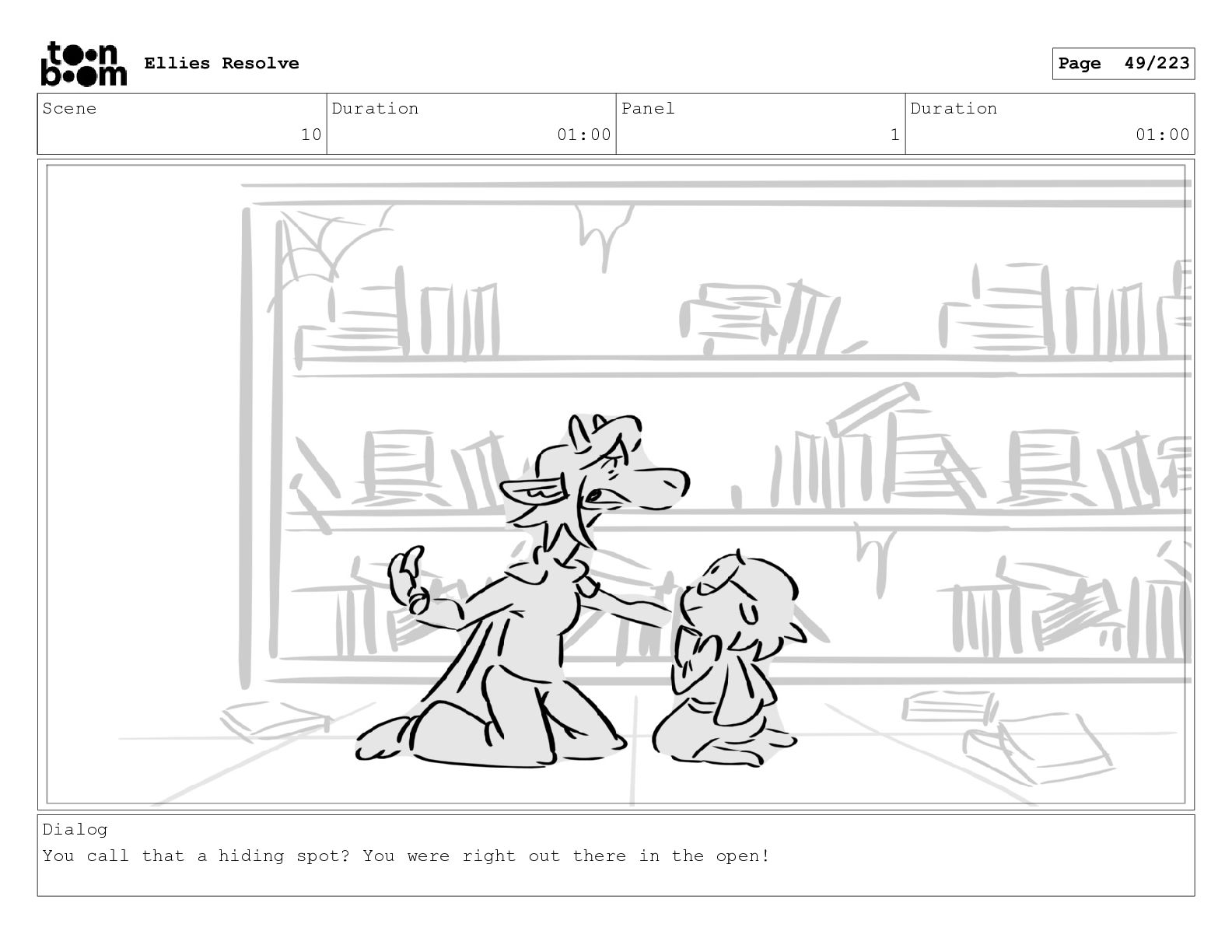 Scene 49 Duration 02:14 Panel 1 Duration 01:13 Ellies Resolve