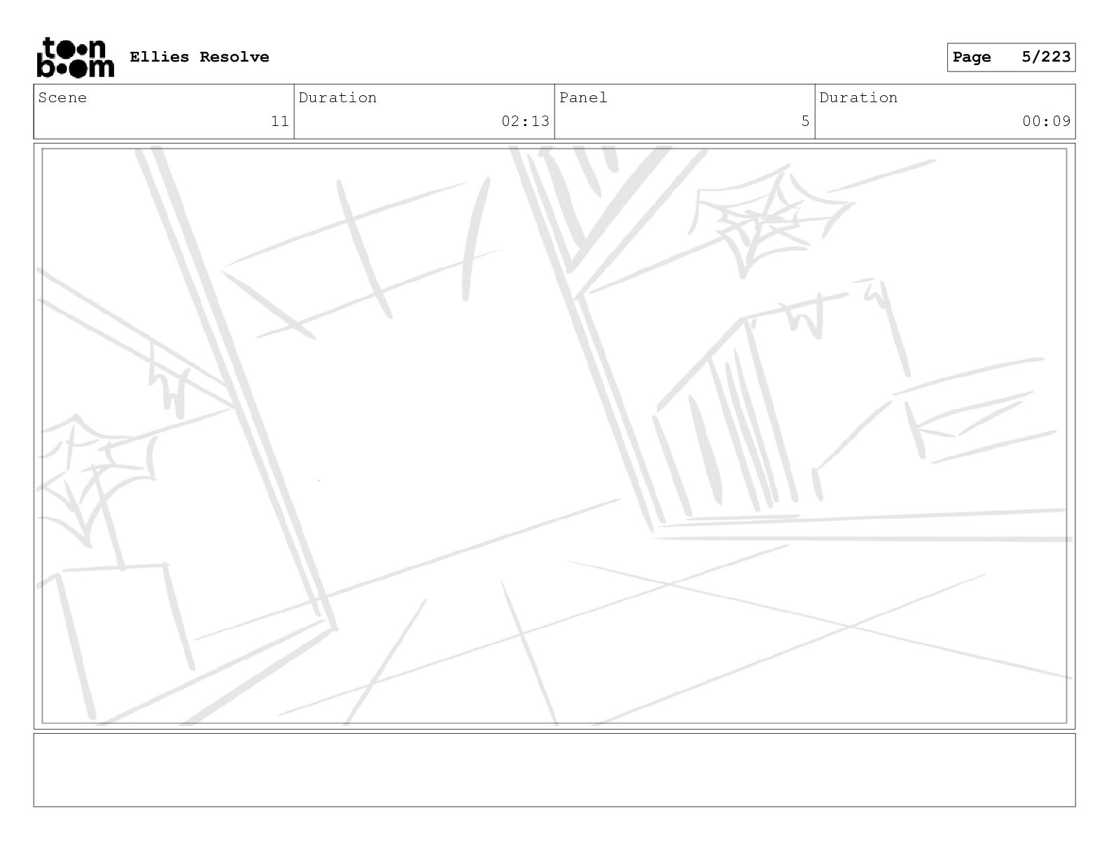 Scene 11 Duration 02:13 Panel 5 Duration 00:09 Ellies Resolve