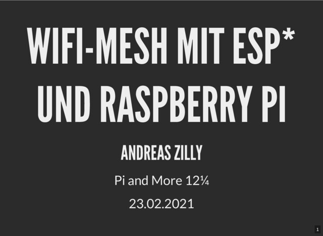 bei dem mittels kostengünstiger ESP*-Entwicklerboards ein Mesh-WLAN über mehrere Stationen aufgespannt wird. Ein Raspberry Pi dient als Gateway zum weiteren Netz, aber auch z.B. ein LoRaWAN-Gateway wäre denkbar.