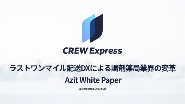 本資料は、調剤薬局業者様を対象として、調剤薬局業界を取り巻く環境を踏まえた上で、CREW Expressを活用したラストワンマイル配送DXの実現を提案することを目的としております。
