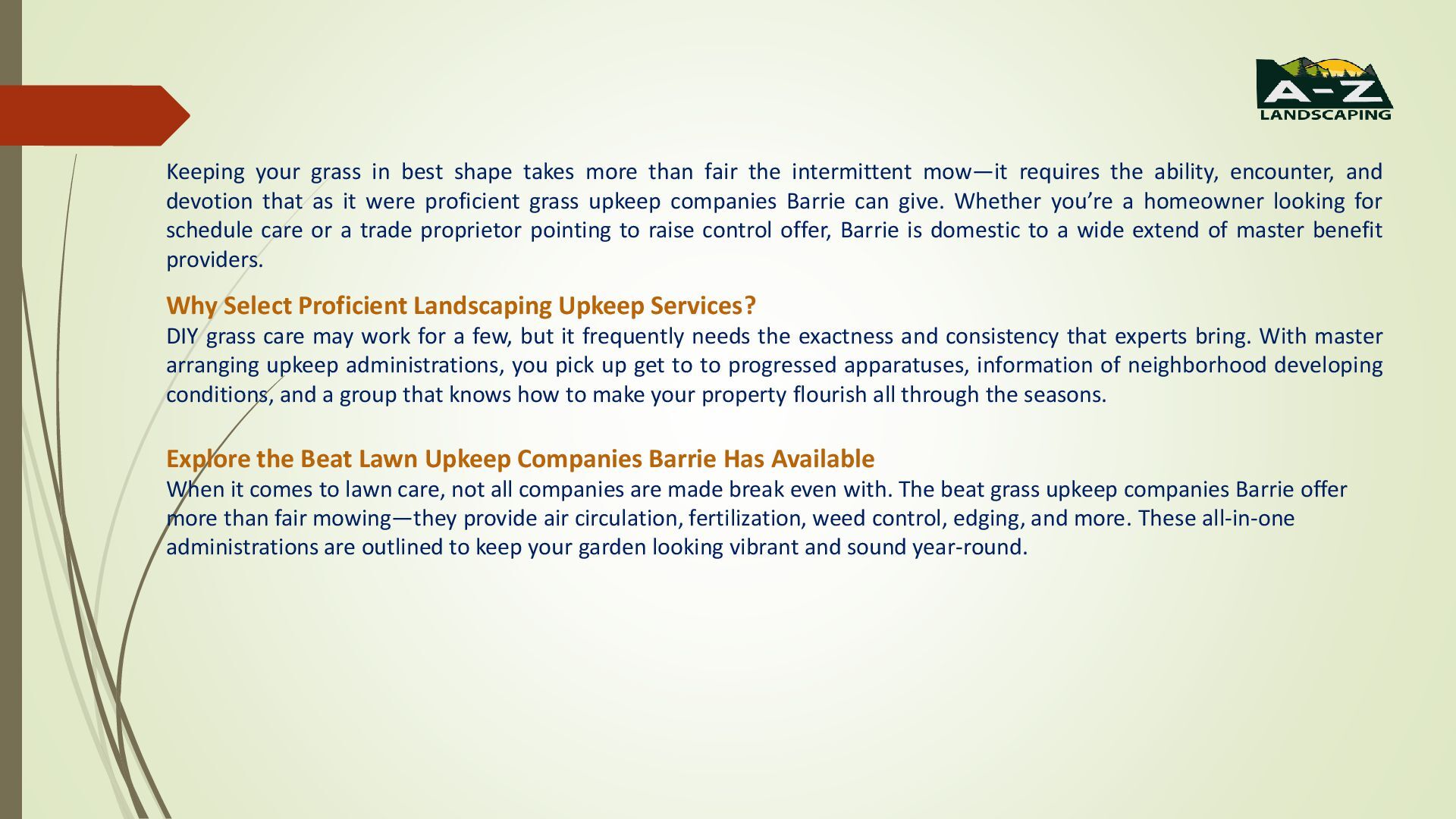 devotion that as it were proficient grass upkeep companies Barrie can give. Whether you’re a homeowner looking for