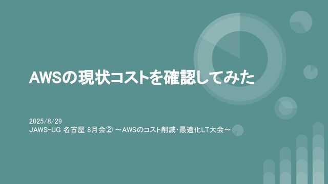AWSの現状コストを確認してみた 2025/8/29 JAWS-UG 名古屋 8月会② 〜AWSのコスト削減・最適化LT大会〜