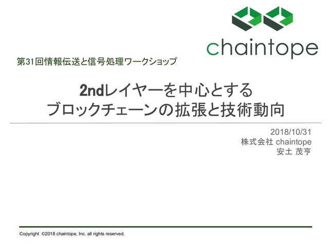 LNにおけるチャネル1つ1つのキャパシティはあまり大きくなく、送金額が少し大きくなると送信先のノード まで、その額を送信可能なキャパシティを持つ経路が存在しないケースが懸念される。このようなケースに おいて、複数のチャネル決済を組み合わせ、1つ1つのチャネルの決済は送金額に満たないものの、その 合計で送金額を満たし、複数チャネルの送金をアトミックに実現するプロトコルが Atomic Multi-Path Payments。 アリスからボブに2つのチャネル( 5 BTC, 1BTC)を使って6BTCを送金する BP = s1 ^ s2 ① ベースプリイメージBPを作成し、xorを計算してBPが 得られるような値s1, s2を得る。 (秘密分散の意図) 使用チャネル数 n = 2 送金額 V = v1(5) + v2(1) アトミック決済用の一意の ID ②部分プリイメージ ri = H(BP || i) と 各チャネルで使用するペイメントハッシュ hi = H(ri) を計算する。 hop payload (ID, n, s1) hop payload (ID, n, s2) hop payload (ID, n, s2) hop payload (ID, n, s2) hop payload (ID, n, s1) ③各チャネルでhiのプリイメージが分かれば資金を入手で きるHTLC決済をスタートする。 ※必ず経路毎に異なるプリイメージを使用する。 各ホップのペイロードには、AMPの使用を 通知するfeature bitがセットされる。 BP = s1 ^ s2 ④ボブは全ての部分支払いを受信し、 そのsiを全て集めてBPを復元する。 BPを復元できたら、各チャネルの支払いを 受け取るのに必要な riを算出できる。