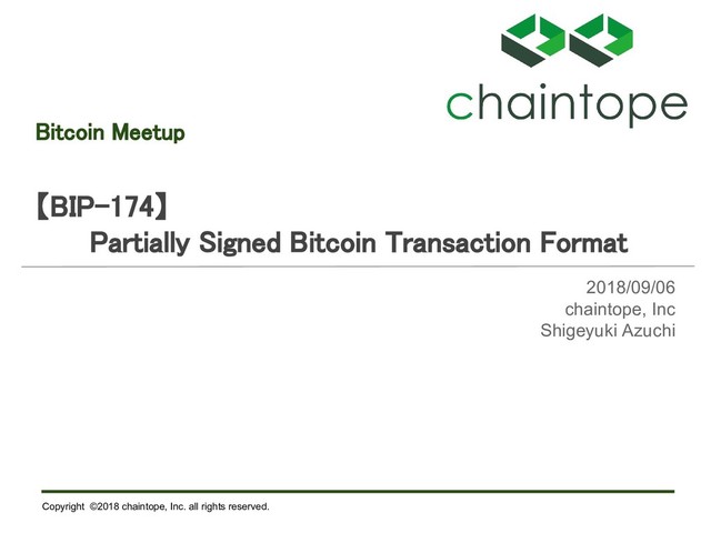 Copyright ©2018 chaintope, Inc. all rights reserved. Bitcoin Meetup 【BIP-174】