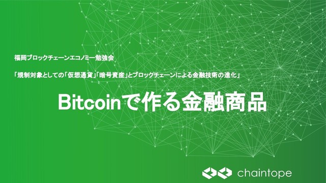 福岡ブロックチェーンエコノミー勉強会 「規制対象としての「仮想通貨」「暗号資産」とブロックチェーンによる金融技術の進化」の発表資料です。