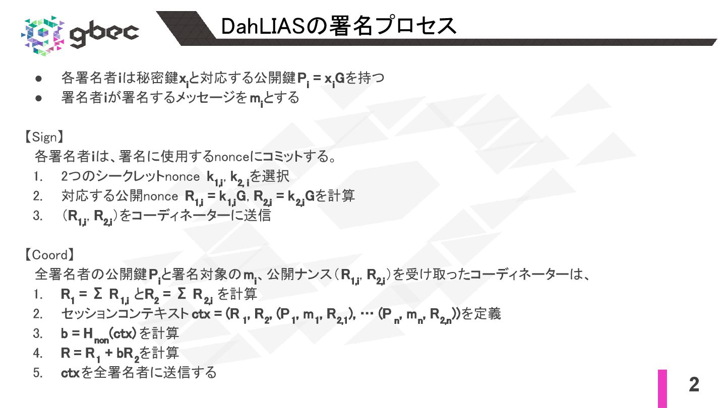 2. 対応する公開nonce R 1,i = k 1,i G, R 2,i = k 2,i Gを計算