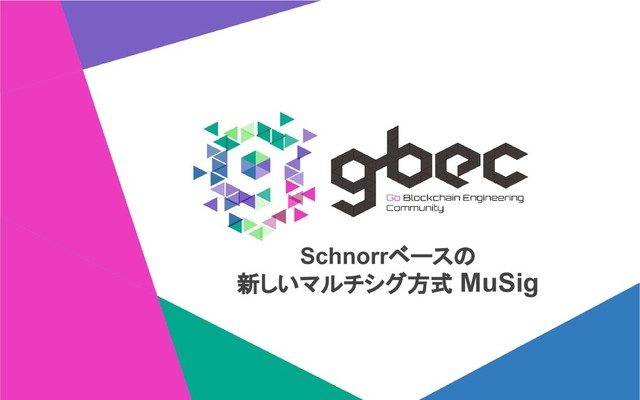 = k1G • 鍵ペア P2 = x2G • nonce R2 = k2G ④ s1 = k1 + H(P, R, m) H(L, P1)x1 を計算 ④ s2 = k2 + H(P, R, m) H(L, P2)x2 を計算 ⑤ s = s1 + s2 = k1 + k2 + H(P, R, m)(H(L, P1)x1 + H(L, P2)x2)を計算 署名データは(R, s) ⑥ sG = R + H(P, R, m)P を検証 ※ P = H(L, P1) P1 + H(L, P2) P2の秘密鍵は H(L, P1)x1 + H(L, P2)x2 ① お互いに公開鍵を交換し、L = H(P1, P2)を計算する。 ② P = H(L, P1) P1 + H(L, P2) P2 をマルチシグの公開鍵とする。 ③ 署名に使用するnonceはR = R1 + R2