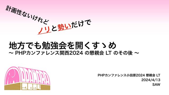 計画性ないけれどノリと勢いだけで地方でも勉強会を開くすゝめ 〜 PHPカンファレンス関西2024 の懇親会 LT のその後 〜