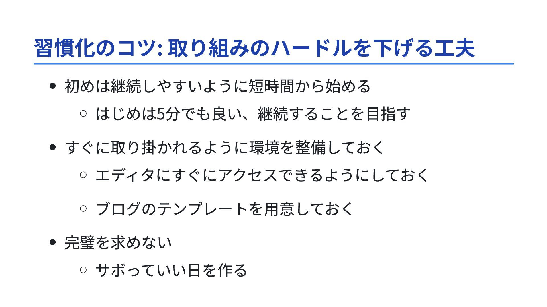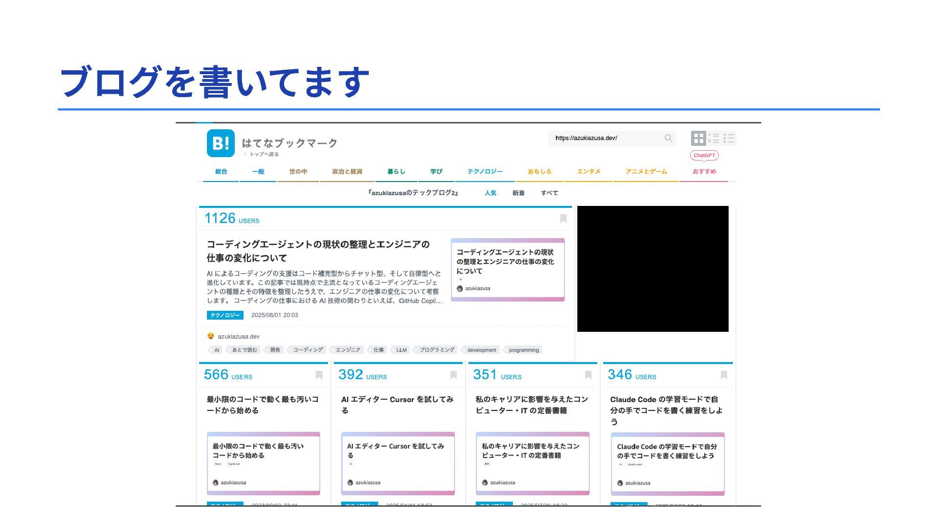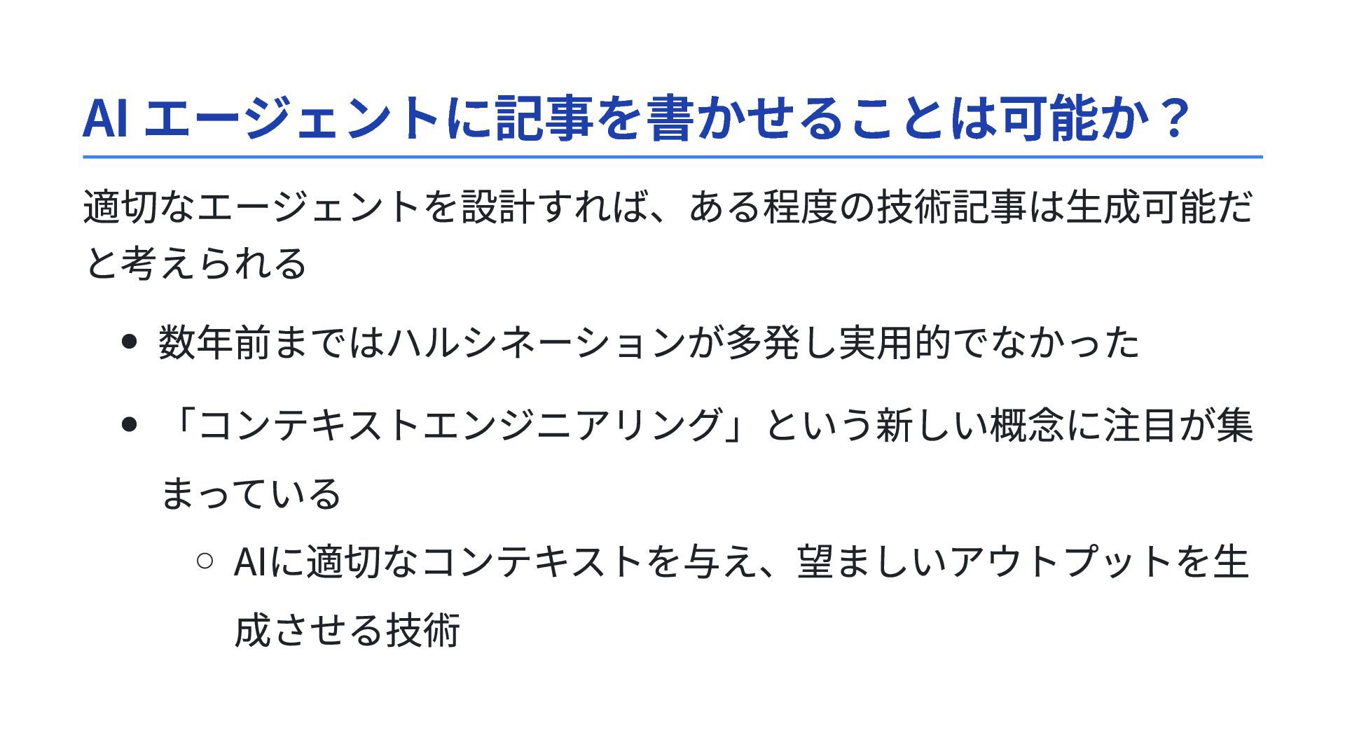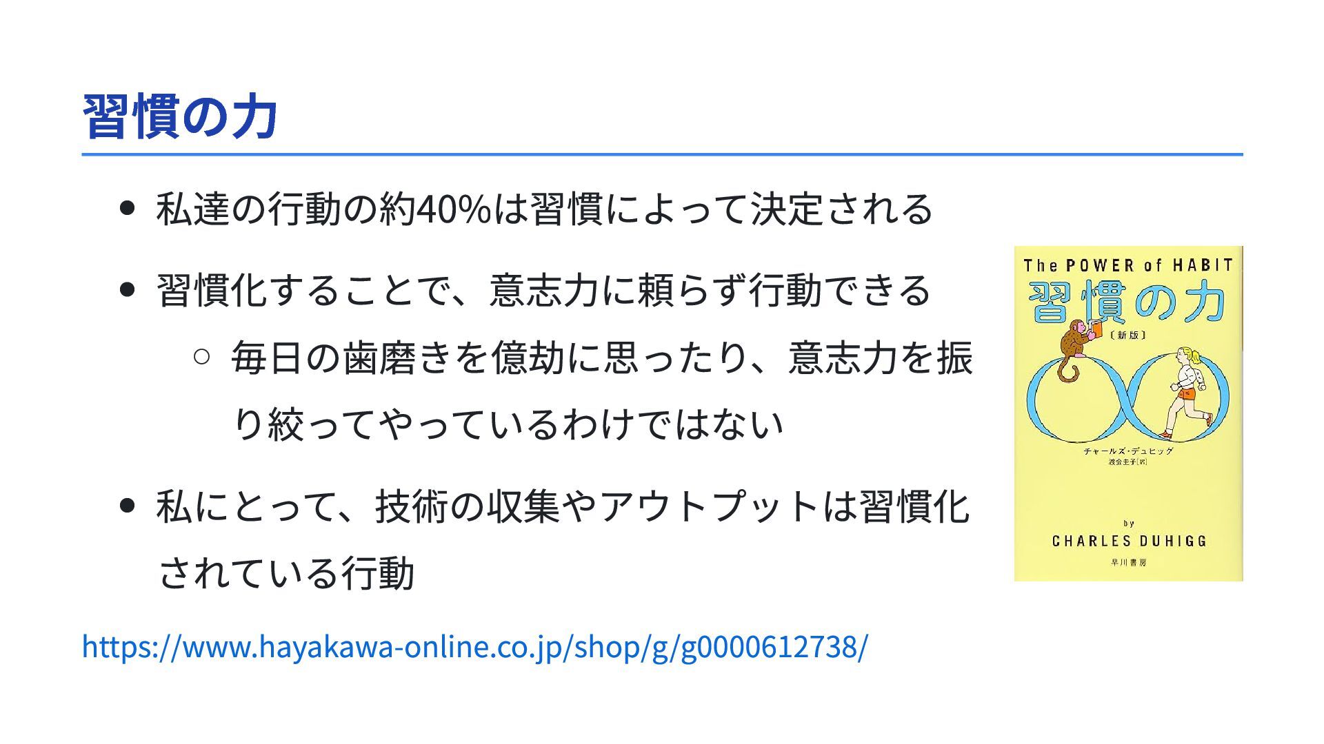 本発表では、急速に進化する技術の世界において、いかに効果的に新しい技術を探求し、その知見を価値あるアウトプットに変換していくかについて、実践的な方法論を共有します。 私は毎週技術ブログを執筆し、年間300冊の本を読むという活動を続けています。この継続的な探求活動から得られた知見を基に、技術者として成長し続けるための具体的なテクニックをお伝えします。