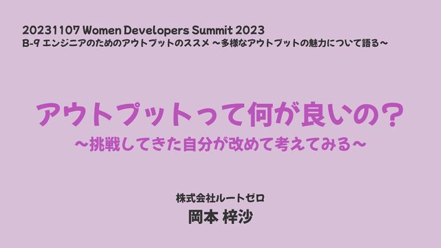アウトプットって何が良いの? ~挑戦してきた自分が改めて考えてみる~ 20231107 Women Developers Summit 2023 B-9 エンジニアのためのアウトプットのススメ