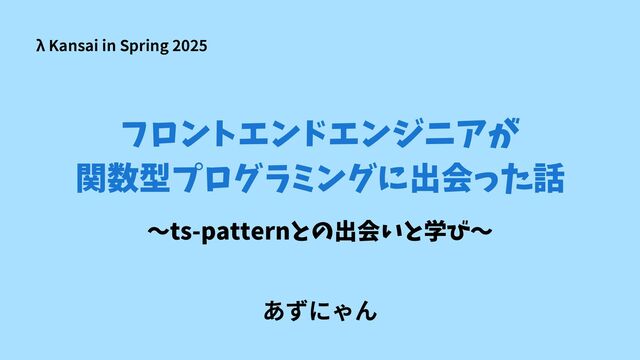 フロントエンドエンジニアが 関数型プログラミングに出会った話 ~ts-patternとの出会いと学び~ あずにゃん λ Kansai in Spring 2025