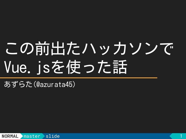 slide master NORMAL この前出たハッカソンで Vue.jsを使った話 あずらた(@azurata45) 1