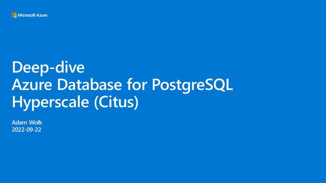 The developer of the Citus extension is Microsoft, which actively supports the PostgreSQL community. We will tell you how we make Citus available in our cloud as Azure Database for PostgreSQL Hyperscale (Citus). You will learn how the Citus' built-in support for multi-tenancy will help you avoid the many problems common for SaaS applications.
