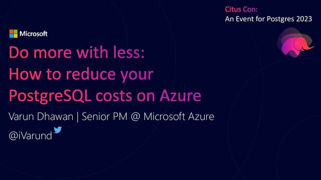 If this sounds exciting, come watch this session where you will learn 10 things you can do today to reduce the cost of Azure Database for PostgreSQL. This talk is for anyone who wants to reduce costs in their PostgreSQL spend in the cloud, whether you are an early-stage startup or a large enterprise with a global footprint.