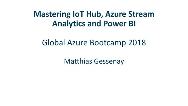 In this demo packed session we will connect a software based Smart Meter to the Azure IoT Hub, feed and transform data with Stream analytics – hot and cold data stream – and display the results in Power BI, both direct through Stream Analytics and Apache Spark. This will show you the end to end design of a typical IoT scenario.
