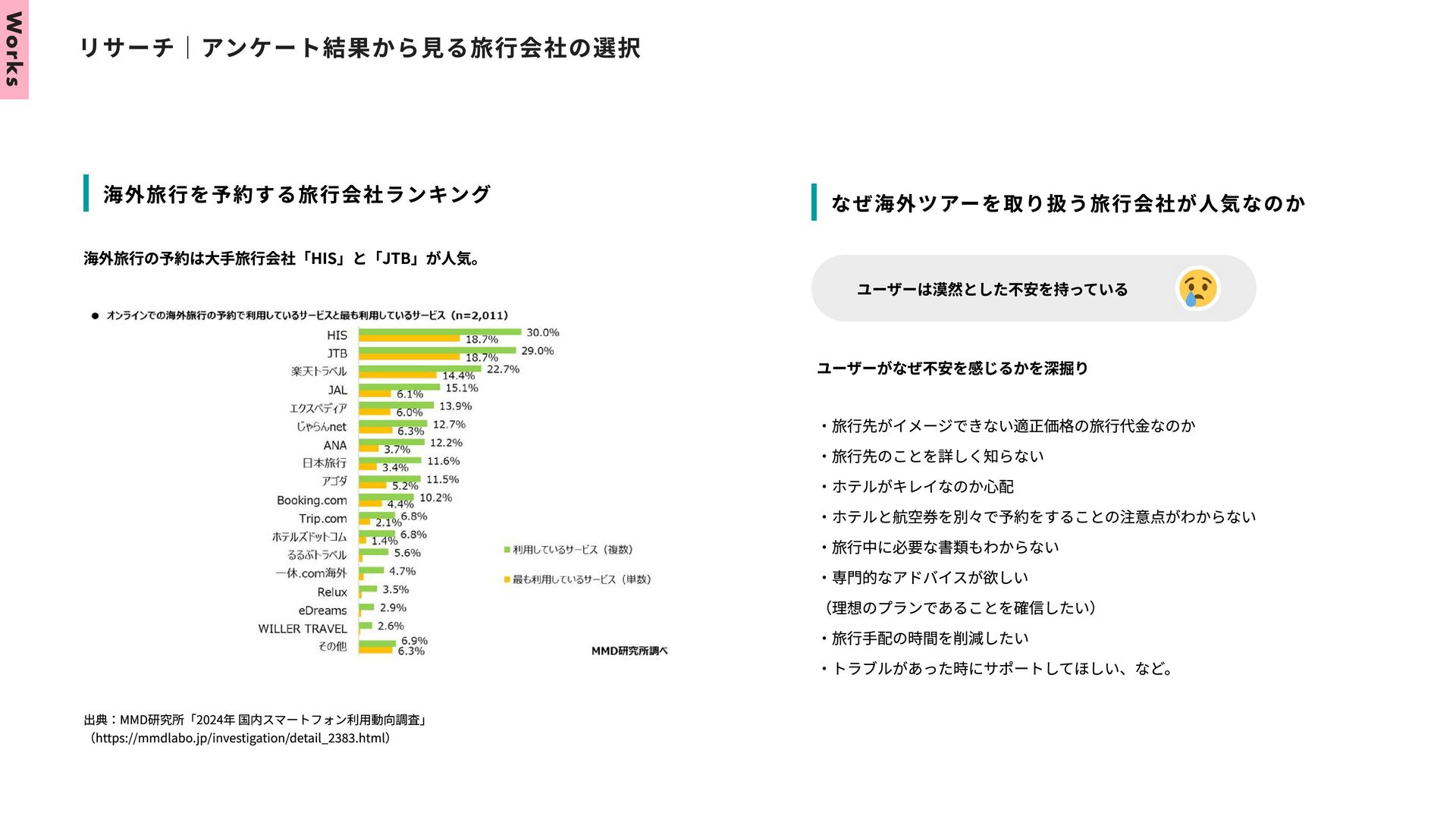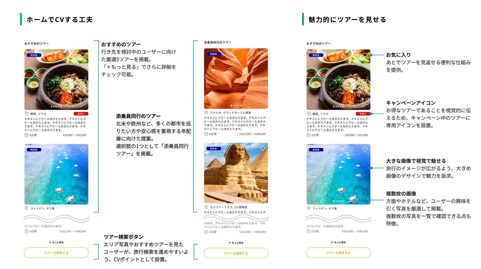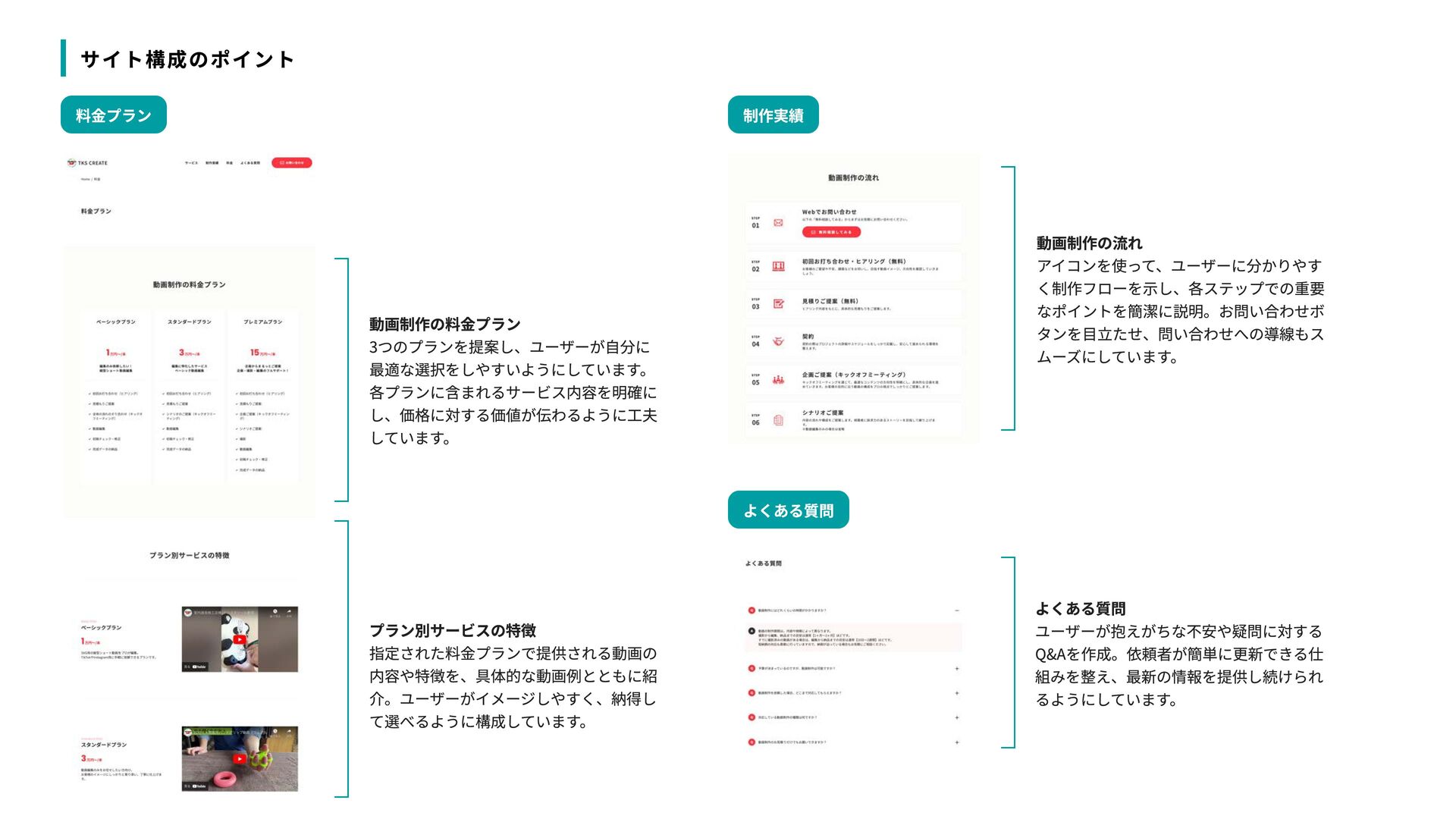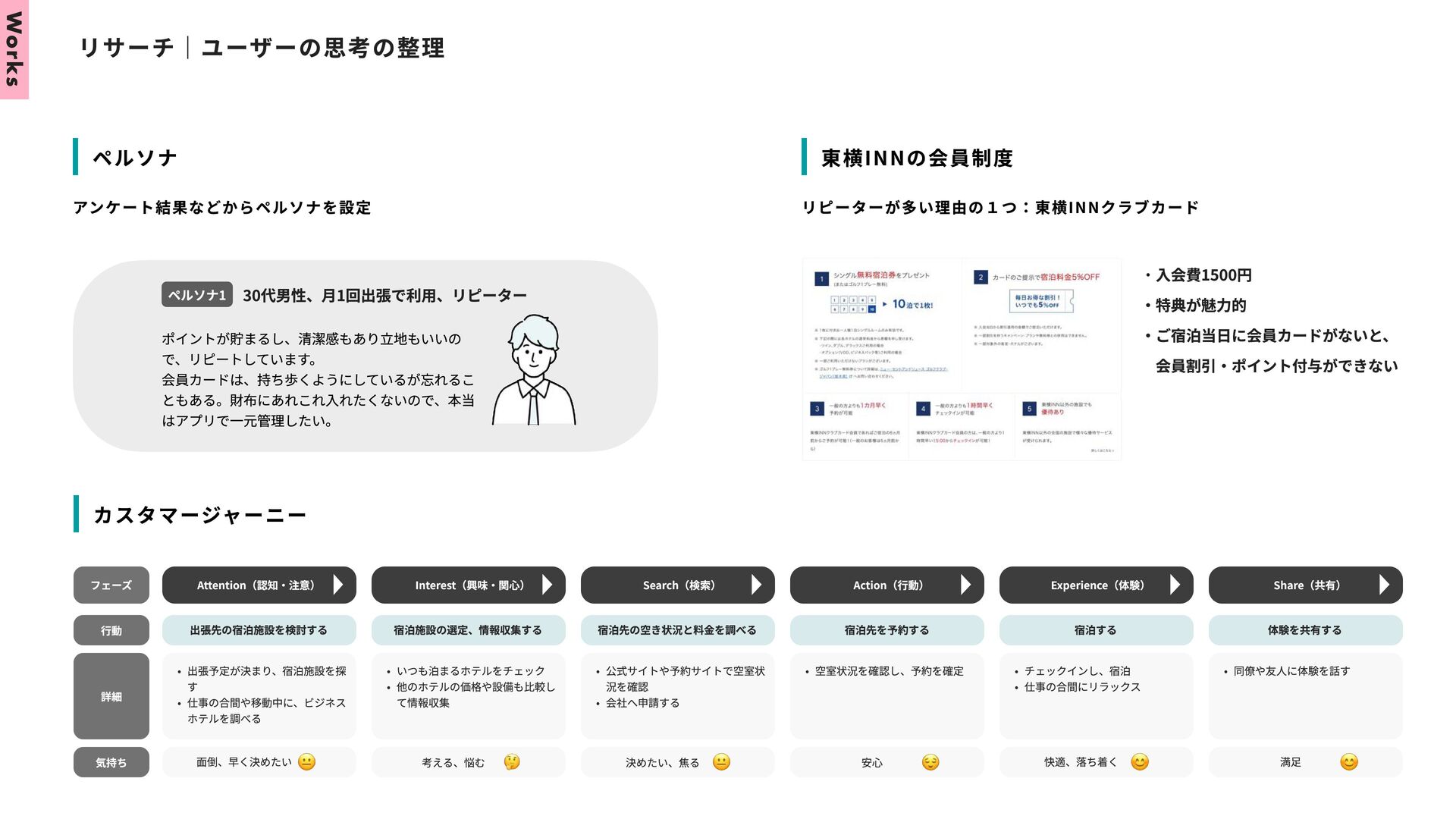 構造を設計します。これにより、ユーザーにとって使いやすく、成果に繋がる サイトを構築します。 カスタマージャーニー フェーズ 行動 詳細 気持ち Attention(認知・注意) 新しいトレイルランイベントを知る Û SNSや友人の投稿、ポータルサイ トからイベント情報を目にす· Û 自然豊かなコースや独自のコンセ プトに興味を引かれる ワクワク、かっこいいと感じる Interest(興味・関心) 詳細情報を調べる Û 公式サイトで大会概要やルートを 確認す· Û エントリー条件や参加費を確認し て参加を検討する 興味津々、少し迷う Search(検索) イベント参加を計画する Û 大会日程や自分のスケジュールを 調整す· Û 移動手段や宿泊施設を検索す· Û 友人を誘うかなどを決める 考える、悩む Action(行動) 大会エントリーを完了する Û エントリープラットフォームで申 し込 Û 参加費を支払い、装備の準備を始 める 満足感、楽しみが増す Experience(体験) イベントに参加する Û コースの魅力や達成感を味わÍ Û 自己発見や次の挑戦に意欲が湧Ö Û 仲間と写真を撮ったり、他の参加 者との交流を楽しむ 充実感、達成感 Share(共有) 大会の思い出を共有する Û SNSに大会の写真や感想を投" Û 友人や同僚に大会の良さを話し、 次回の参加を誘Í Û ブログなどで体験を記録する 誇らしい、かっこいいと感じる ペルソナ 依頼者自身がトレイルランの経験者であり、知人の主催する大会にも参加した ことから、ターゲット層を深く理解。 その視点を活かし、以下のペルソナを設定しました。 ペルソナ1 30代男性、トレイルラン大会経験者、会社勤め トレイルランに参加することを「かっこいい」と感 じ、自己実現の一環として取り組む。 練習イベントや大会に定期的に参加し、トレイルラ ンを趣味として楽しんでいる。