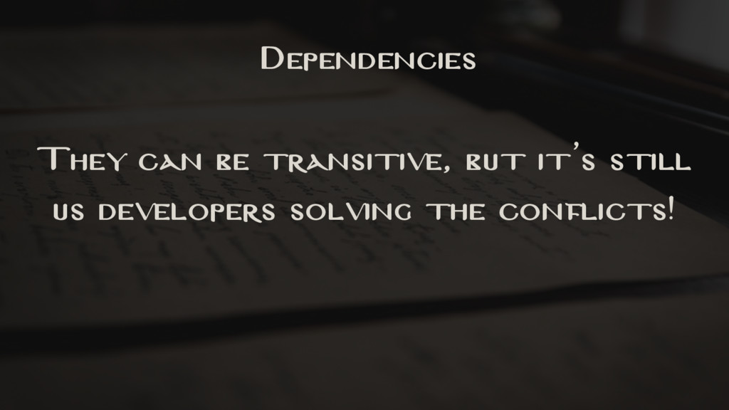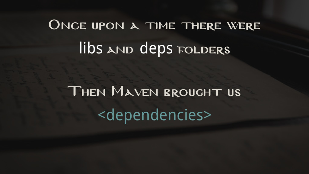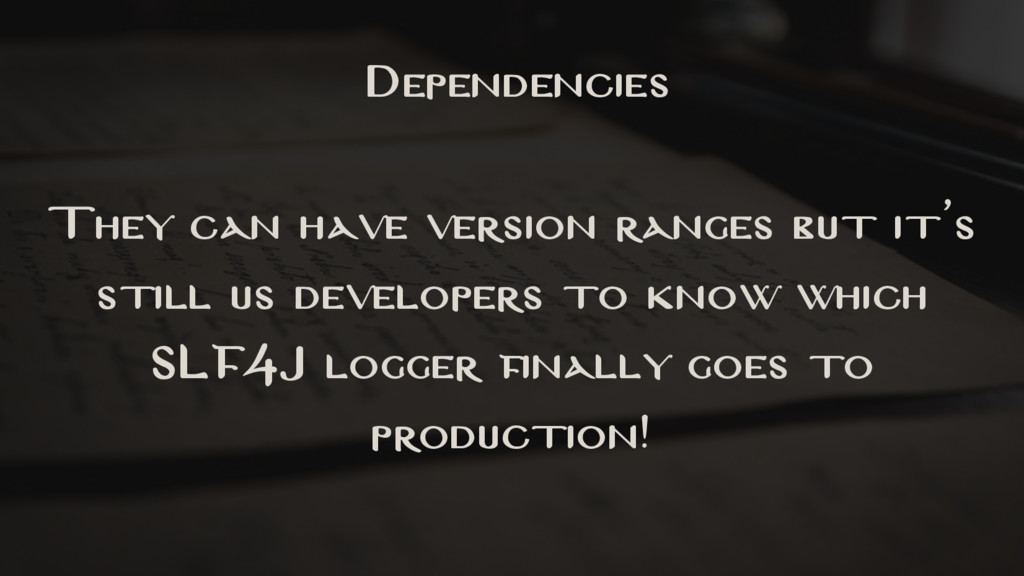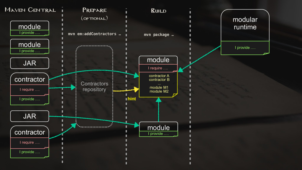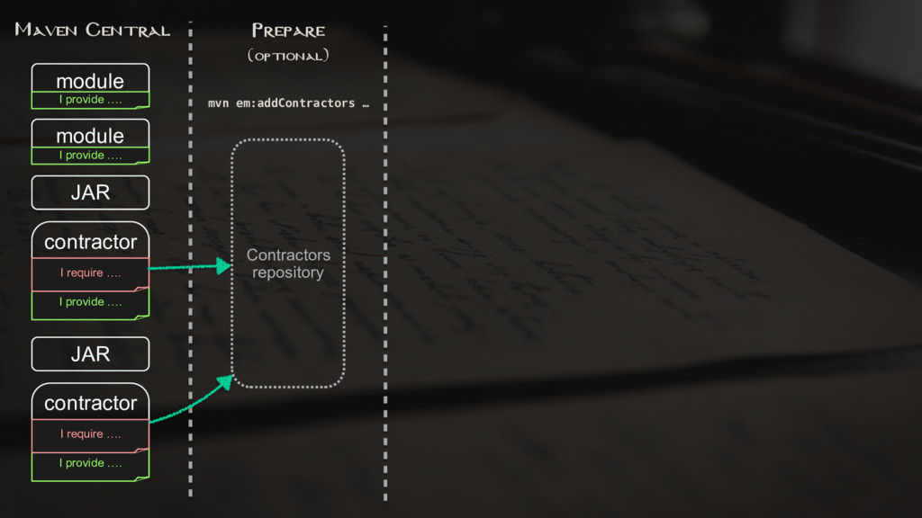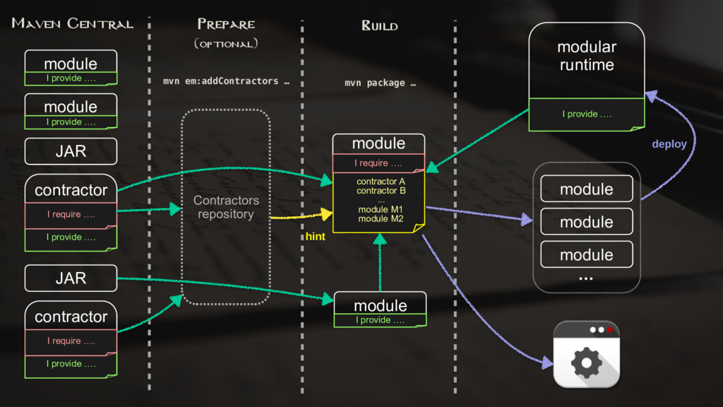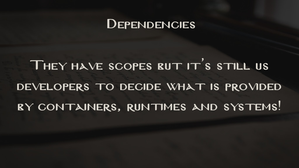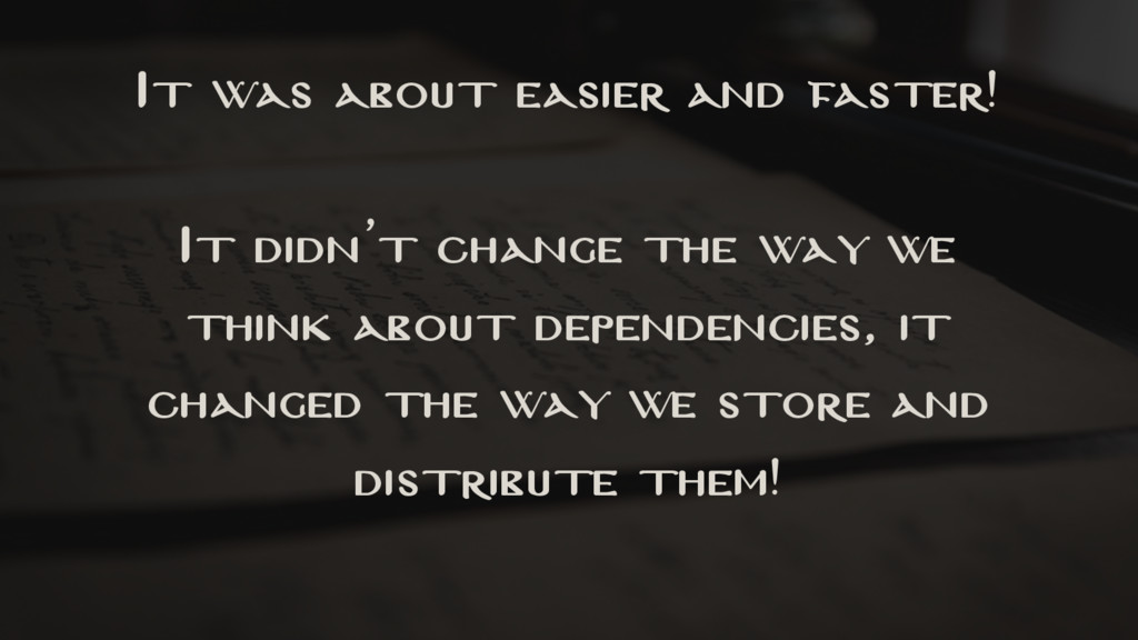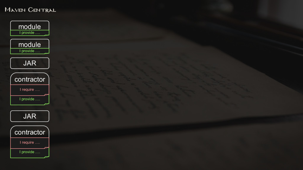 Creating objects in Java using new keyword was a no brainer for many years! Then IoC / DI questioned the approach and component containers changed the way we think about it! Managing dependencies between artifacts is yet another topic we still tend to think we have sorted out. Maven central has become the de facto standard artifact repository. Yet it's far from perfect as it is still developer's responsibility to know and configure proper dependencies. This easily becomes nightmare with transitive and provided dependencies. So may be it's time to challenge that approach too? What if we move from hardcoded artifacts to artifact discovery based on well defined contracts? This talk will demonstrate how that can be done today, what are the issues and draft a potential roadmap to fully automated dependency management!
