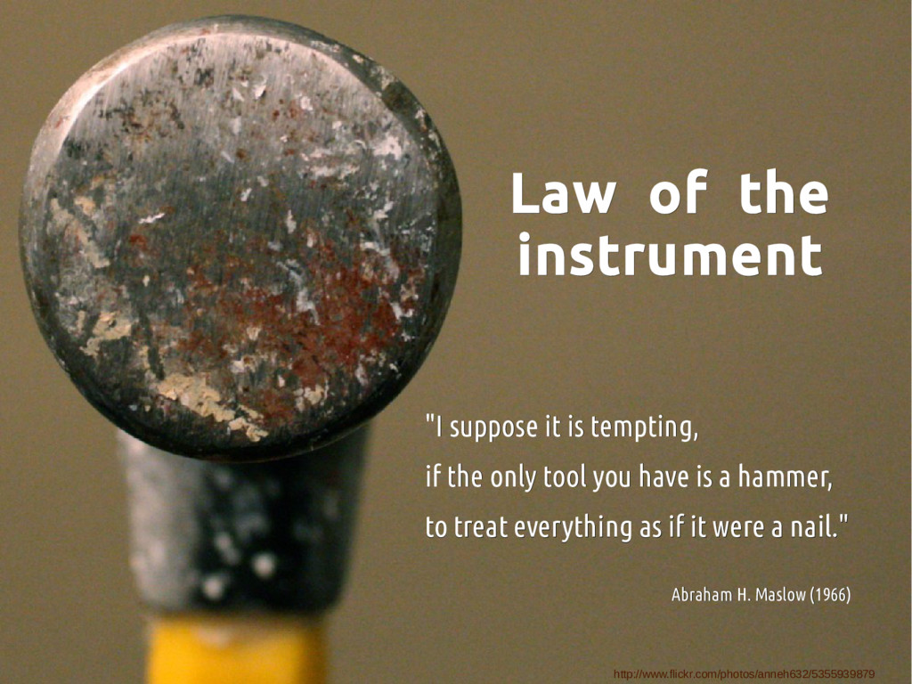 it is tempting, "I suppose it is tempting, if the only tool you have is a hammer, if the only tool you have is a hammer, to treat everything as if it were a nail." to treat everything as if it were a nail." Abraham H. Maslow (1966) Abraham H. Maslow (1966) http://www.flickr.com/photos/anneh632/5355939879
