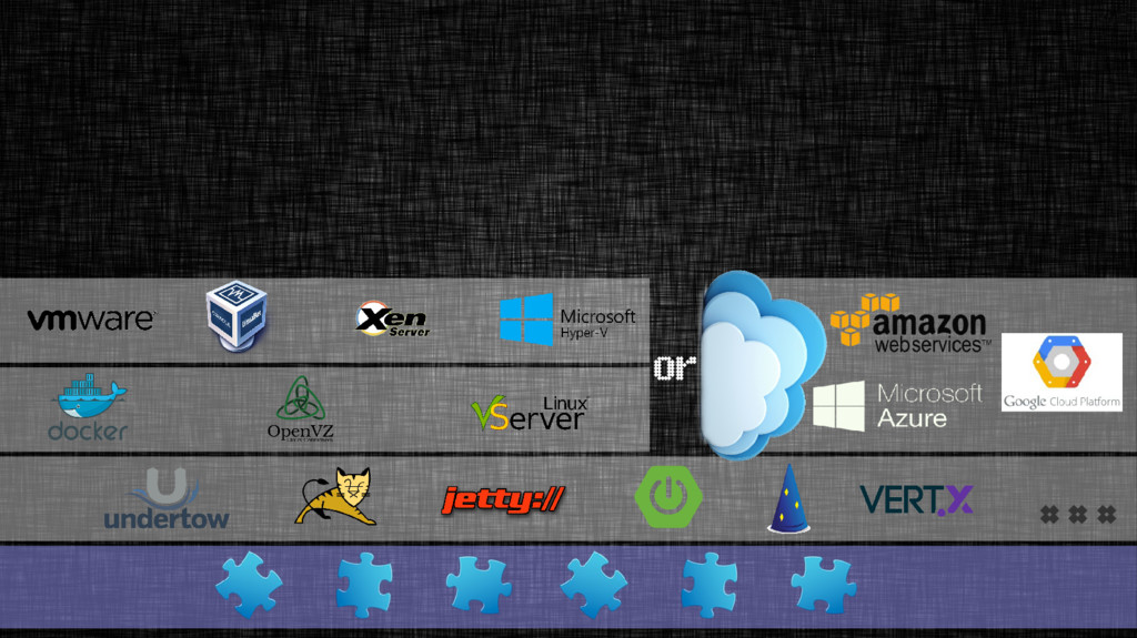 platform for the Java programming language Confluence Eclipse Fuse ESB Glassfish Jboss JIRA JonAS Service Mix Weblogic Websphere . . . The architecture of choice for and