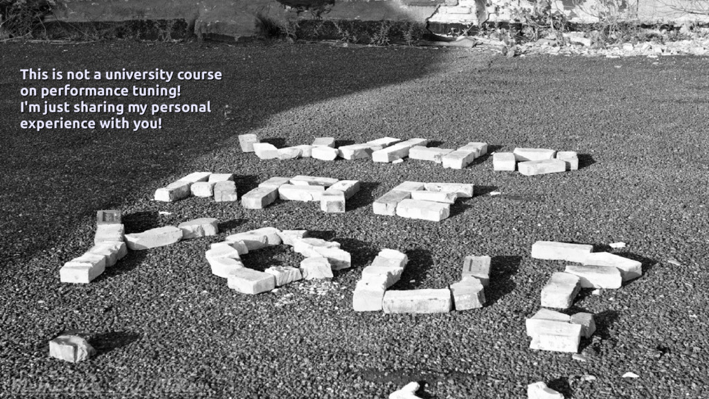 university course on performance tuning! on performance tuning! I'm just sharing my personal I'm just sharing my personal experience with you! experience with you!