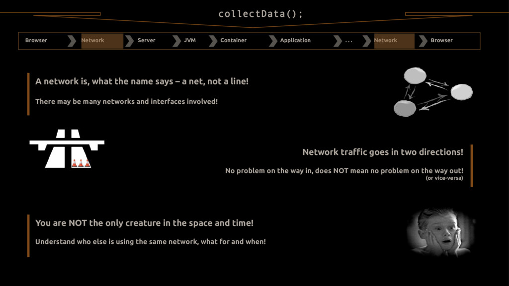 . You are NOT the only creature in the space and time! Understand who else is using the same network, what for and when! A network is, what the name says – a net, not a line! There may be many networks and interfaces involved! Network traffic goes in two directions! No problem on the way in, does NOT mean no problem on the way out! (or vice-versa) collectData(); collectData();