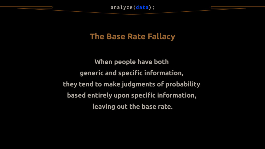 specific information, they tend to make judgments of probability based entirely upon specific information, leaving out the base rate. analyze( analyze(data data); );