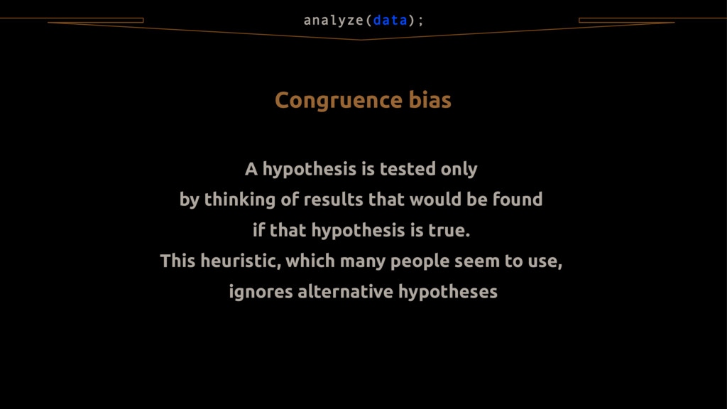 results that would be found if that hypothesis is true. This heuristic, which many people seem to use, ignores alternative hypotheses analyze( analyze(data data); );