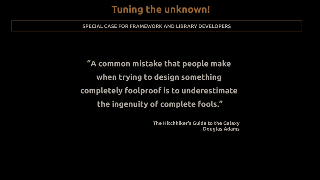 “A common mistake that people make when trying to design something completely foolproof is to underestimate the ingenuity of complete fools.” The Hitchhiker's Guide to the Galaxy Douglas Adams