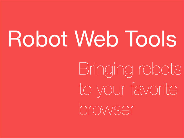 Slides from my presentation at ROSCon 2013. Covers the new Robot Web Tools organization, which is a community-contributed collection of JavaScript and server libraries for getting your robot on the web.