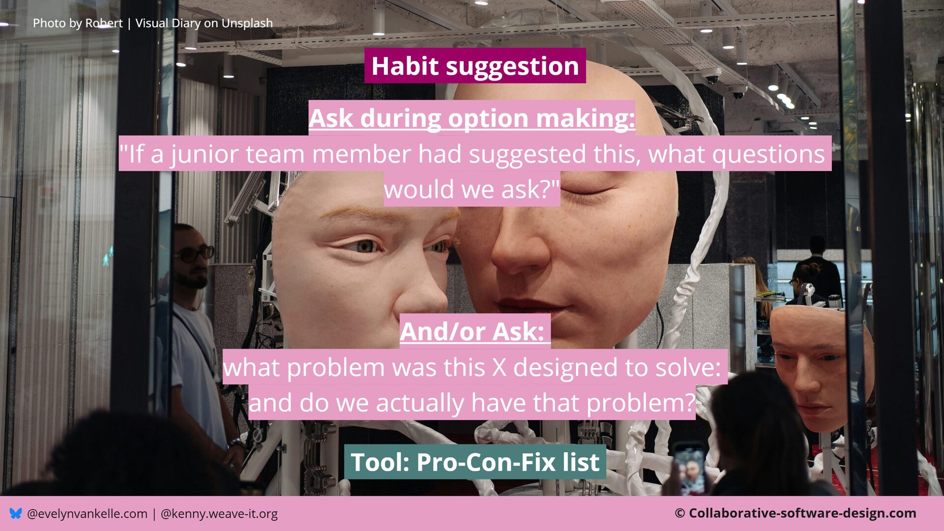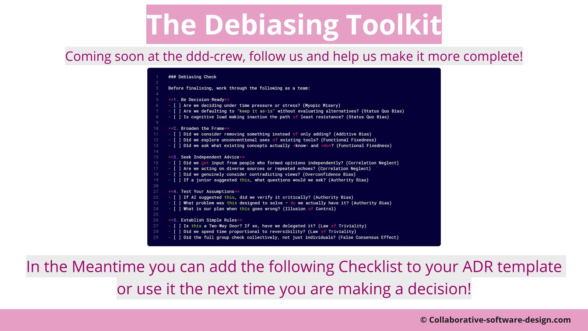 We will move beyond simply being aware of biases. We will introduce a practical, five-step checklist designed to systematically 'debias' your design choices, helping you build both better software and a better decision-making habit for all your technical work.