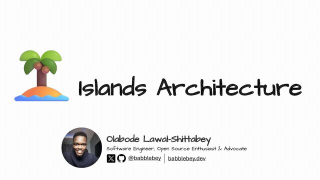 Islands Architecture is a paradigm shift in web development that offers a fresh approach to building highly performant web applications. By breaking down monolithic applications into smaller, self-contained "islands", so developers can achieve better web performance. In this talk, we explore the principles behind Islands Architecture (imperatively the why and its relation to JavaScript and web development), its benefits and how it can be implemented in real-world projects.