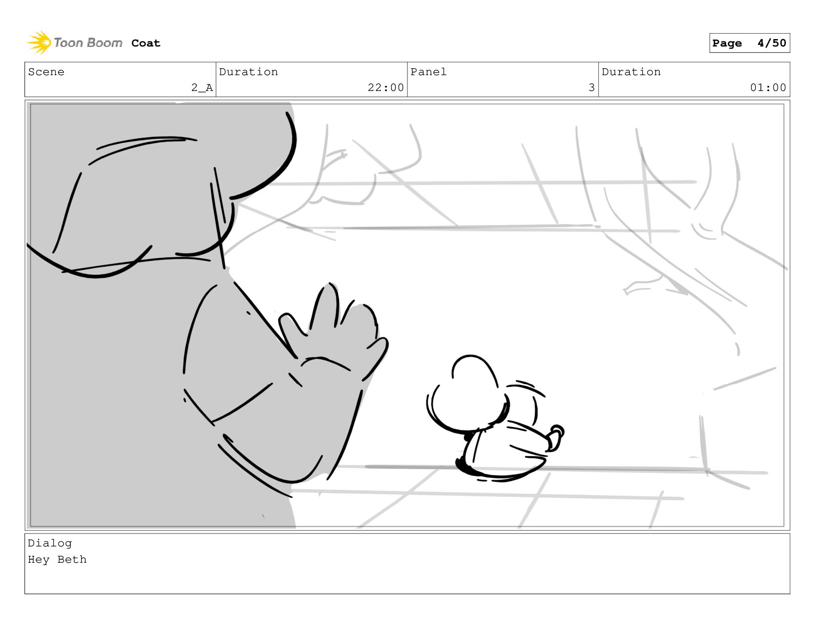 Scene 2_A Duration 22:00 Panel 3 Duration 01:00 Dialog Hey