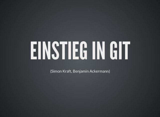 EINSTIEG IN GIT EINSTIEG IN GIT (Simon Kraft, Benjamin Ackermann)
