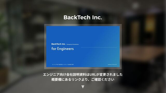 ▽ 本資料は「エンジニア向け 株式会社バックテック会社説明資料」として新しくなりました。