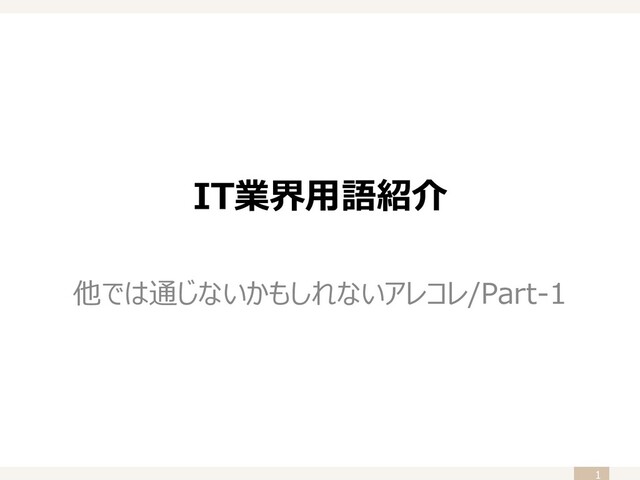 IT業界用語紹介 他では通じないかもしれないアレコレ/Part-1 1