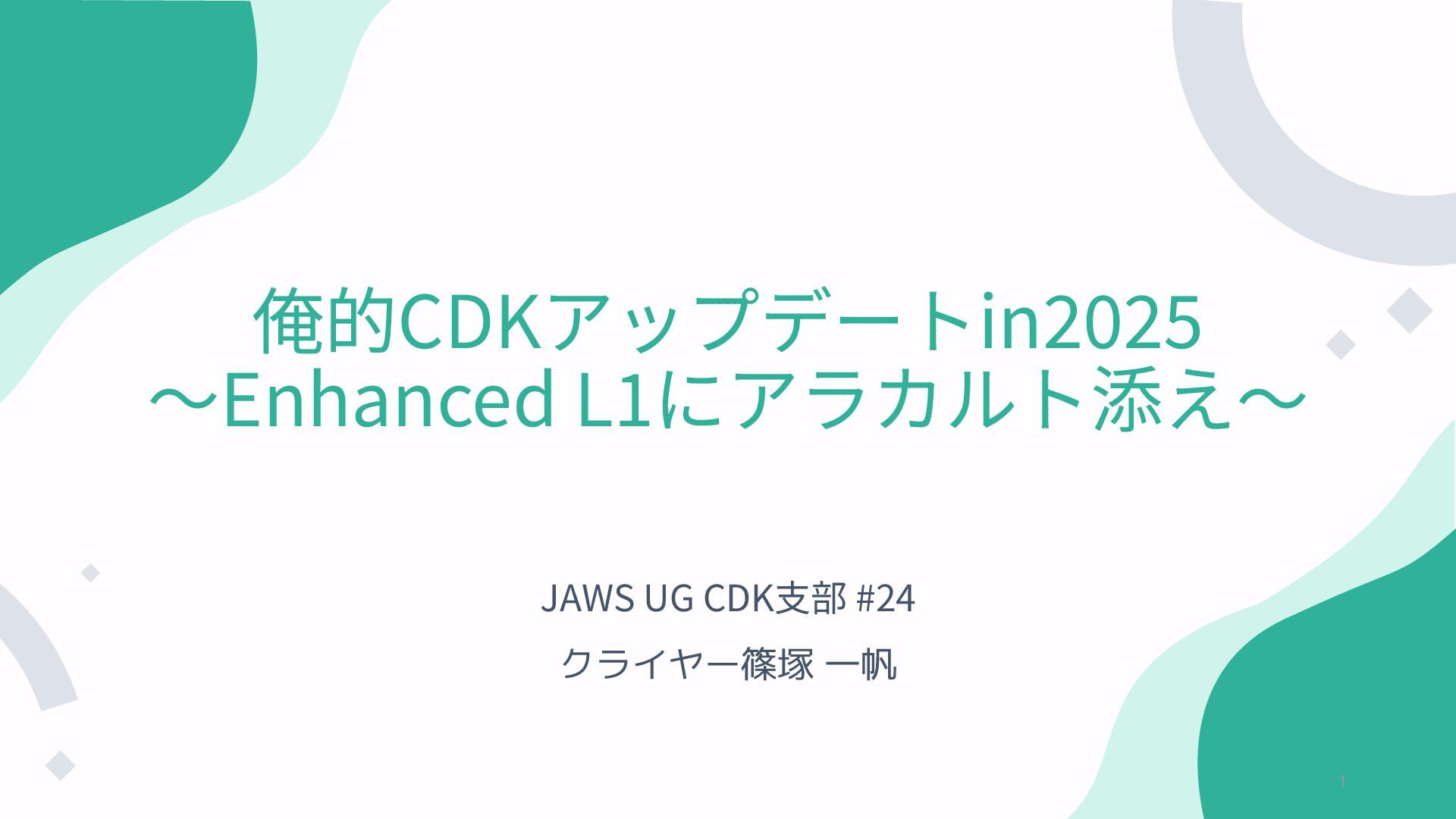 俺的CDKアップデートin2025 〜Enhanced L1にアラカルト添え〜 JAWS UG CDK⽀部 #24 クライヤー篠塚 一帆 1