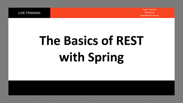 . . . . REST With Spring HI • My name is Eugen Paraschiv (don’t try to pronounce it) • Created my first REST API with Spring in 2010 • Got excited and started obsessing about REST • Created about 100 separate APIs since then • Made a lot of mistakes and slowly learned from them • The last APIs I created for a client is well positioned to become the largest ElasticSearch installation in the world