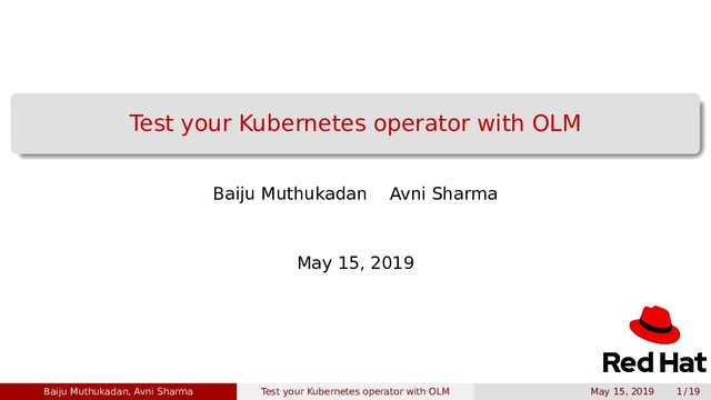 Operator pattern is pioneered by CoreOS, and it is embraced by Kubernetes community. The Operator framework from CoreOS/Red Hat is also getting adoption. Operator Lifecycle Management (OLM) is part of the Operator framework. This talk walks you through testing Kubernetes operator with Operator Lifecycle Management (OLM).