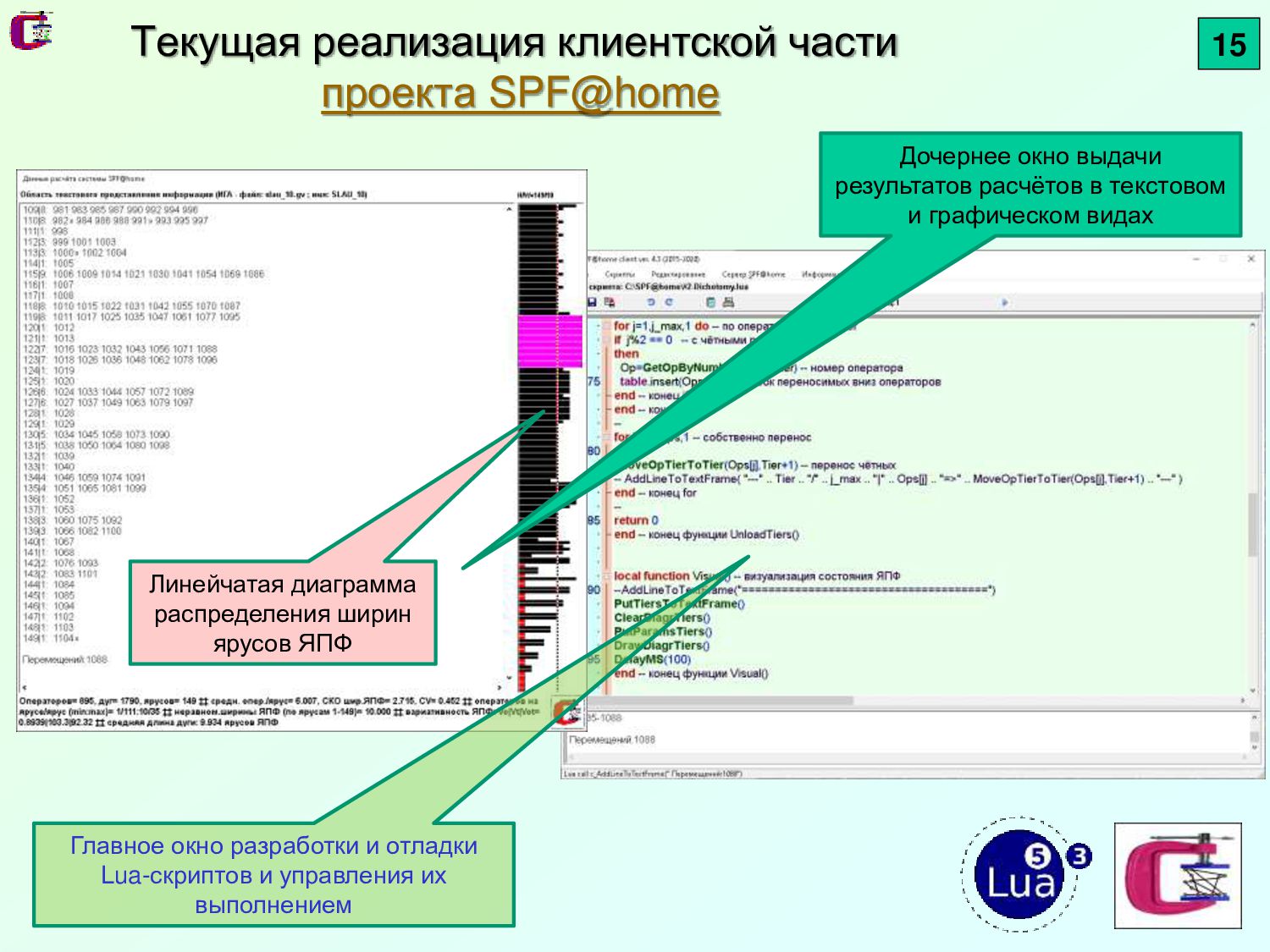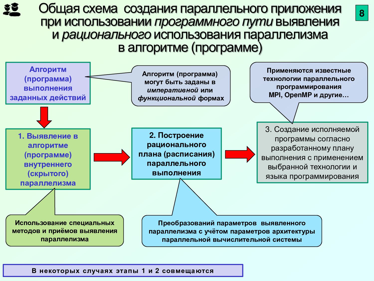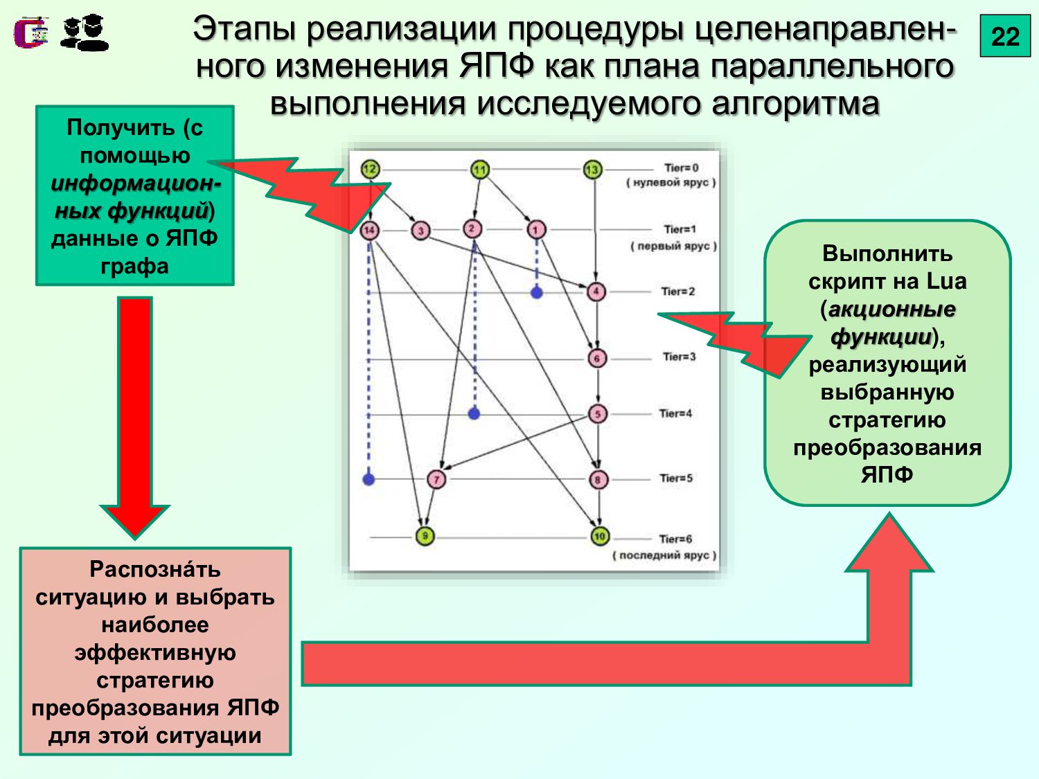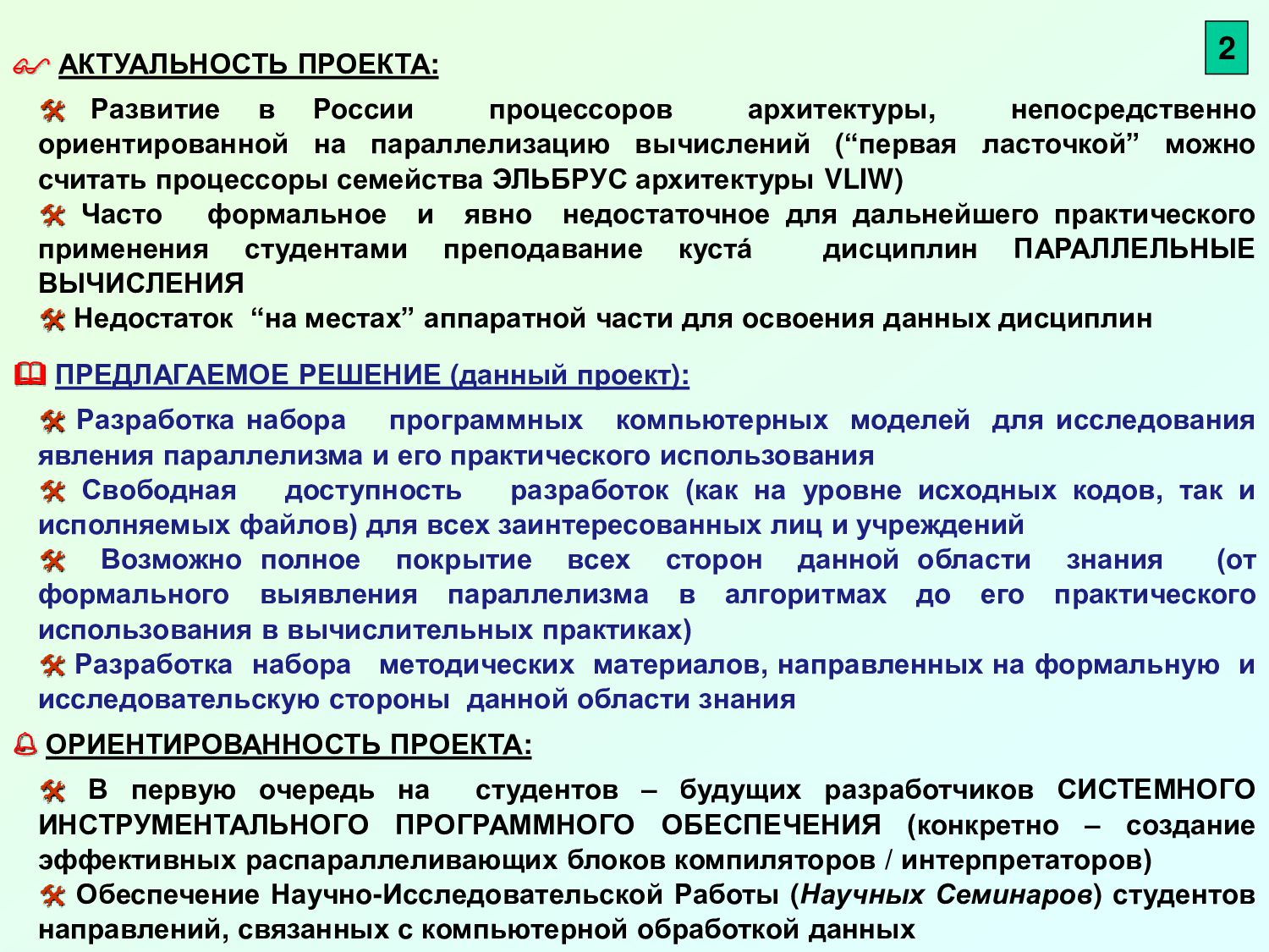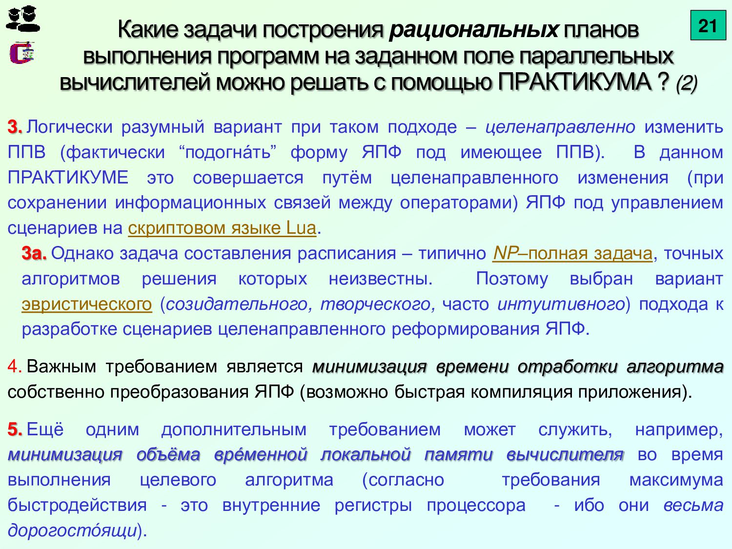 A, TWO, A2, !false ; A2 ← 2 * A MUL A, FOUR, A4 ; A4 ← 4 * A MUL B, NEG_ONE, B_NEG ; B_NEG ← NEG_ONE * B POW B, TWO, BB ; BB ← B^2 MUL A4, C, AC4 ; AC4 ← A4 * C SUB BB, AC4, D ; D[iskriminant] ← BB - AC4 SQR D, sqrt_D, IS_re ; ← sqrt(D) -> sqrt_D ADD B_NEG, sqrt_D, W1, IS_re ; W1 ← B_NEG + D_SQRT SUB B_NEG, sqrt_D, W2, IS_re ; W2 ← B_NEG - D_SQRT DIV W1, A2, re_X1, IS_re ; re_X1 ← W1/A2 DIV W2, A2, re_X2, IS_re ; re_X2 ← W2/A2 MUL D, NEG_ONE, NEG_D, !IS_re ; NEG_D ← NEG_ONE x D SQR NEG_D, sqrt_D, !IS_re ; sqrt_D ← sqrt(NEG_D) DIV B_NEG, A2, re_X1, !IS_re ; 1-th root (real) DIV sqrt_D, A2, im_X1, !IS_re ; 1-th root (img) CPY re_X1, re_X2, !IS_re ; 2-th root (real) DIV sqrt_D, A2, W, !IS_re ; temp for im_X2 MUL W, NEG_ONE, im_X2, !IS_re ; 2-th root (im) SET 1, A ; A ← 1 SET 3, B ; B ← 7/3 (re / im) SET 3, C ; C ← 3 SET 2, TWO ; TWO ← 2 SET 4, FOUR ; FOUR ← 4 SET -1, NEG_ONE ; NEG_ONE ← (-1) SET 0, ZERO ; ZERO ← 0 PGE D, ZERO, IS_re ; IS_re ← true if D>=0 13 Использована команда PGE, устанавливающая флаг предиката IS_re в зависимости от соотношения значений переменных D и ZERO В качестве флага-предиката здесь используется IS_re. Командой PGE D, ZERO, IS_re флаг IS_re устанавливается в ‘true’ при условии D≥0 (здесь D – дискриминант полного квадратного уравнения) или в ‘false’ в противном случае; далее вычисления производятся в зависимости от значения флага IS_re (четвёртое – необязательное - поле оператора). Применение предикатов позволяет ликвидировать ограничения в линейности используемых алгоритмов без применения регистра-счётчика команд. Предикатный метод даёт возможность уйти от (крайне высокозатра́тной) практики предсказа́ ния переходов в программах!