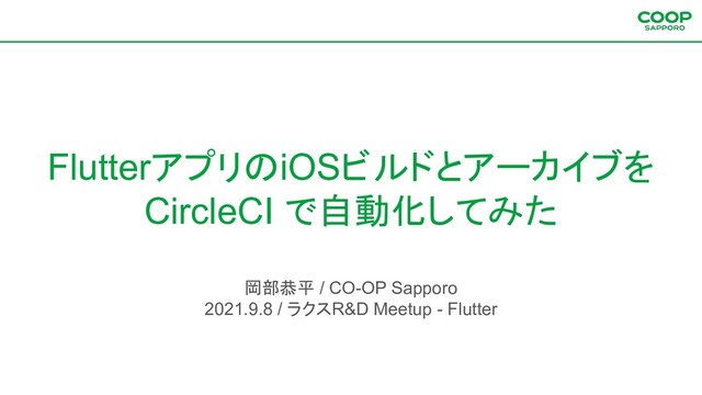 FlutterアプリのiOSビルドとアーカイブを CircleCI で自動化してみた 岡部恭平 / CO-OP Sapporo 2021.9.8 / ラクスR&D