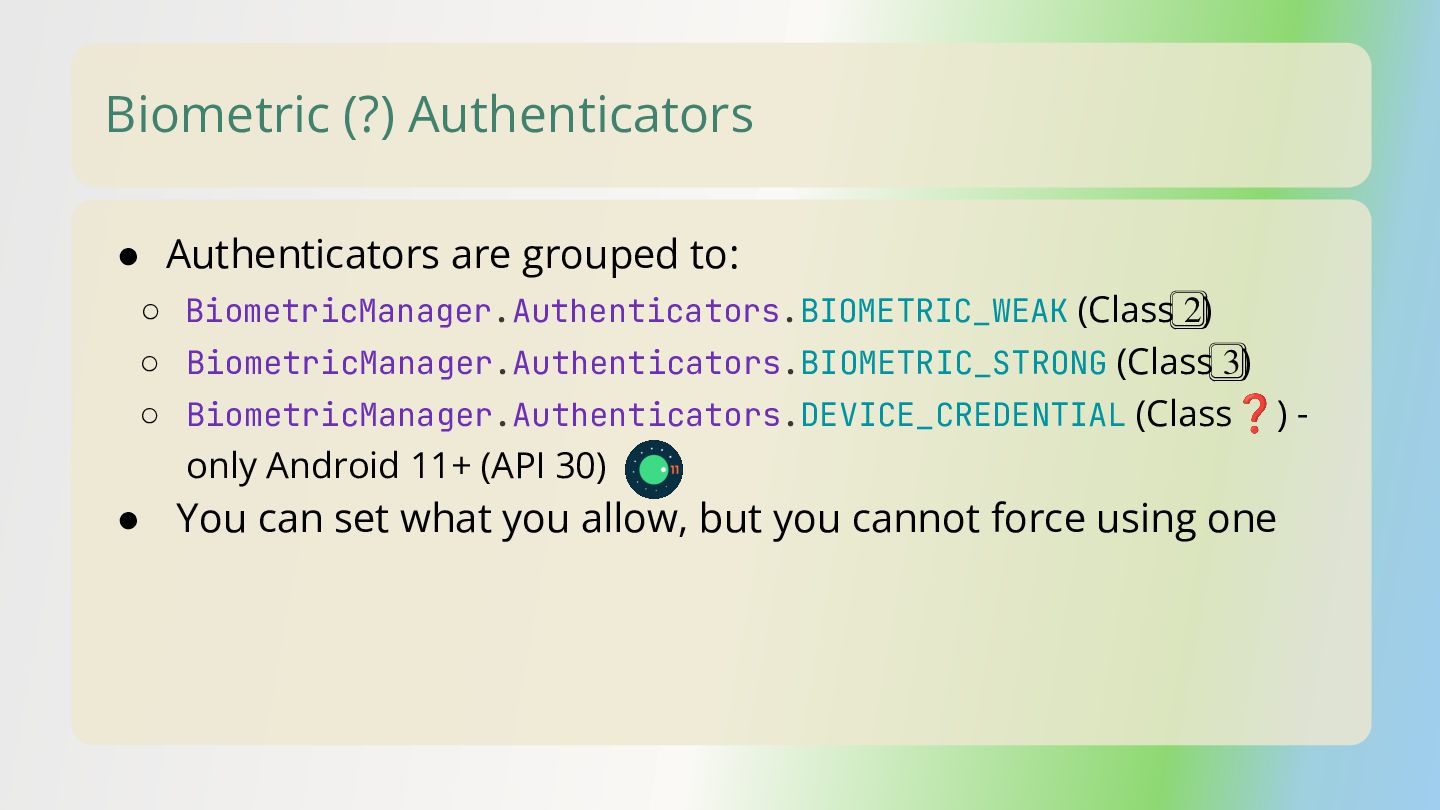 Our joint presentation with my colleague Josu Vergara Lecue about the Android Biometric API, KeyStore and Key Attestation as presented at Appdevcon on March 13, 2026.